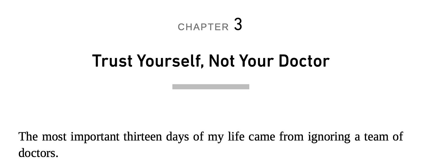 Back to the title of Chapter 3, shared above: Trust Yourself, Not Your Doctor. The book advises readers not to accept pushback from their doctors on tests like fasting insulin, and frames the medical system as primarily a profit-driven obstacle to health. The irony: the Meanses accuse doctors of over-prescribing statins, SSRIs, and metformin while simultaneously recommending a lengthy list of tests and, implicitly, supplements, many sold by companies the Meanses are affiliated with.